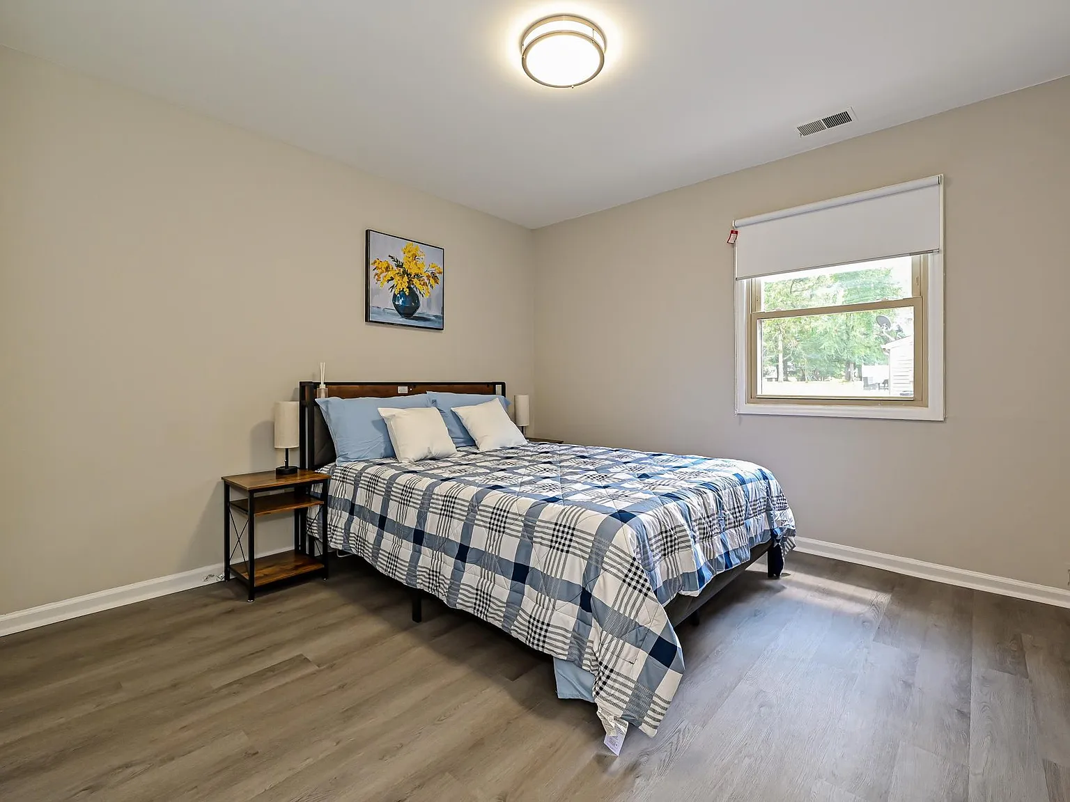 Step inside to enjoy brand-new furniture throughout, creating a comfortable and welcoming atmosphere. The entire home has been freshly painted, complementing the open-concept living space, which is filled with natural light and gleaming hardwood floors. The updated kitchen is equipped with modern appliances, a breakfast bar, and ample storage ideal for cooking and entertaining. Relax or unwind on your private outdoor patio, perfect for enjoying the outdoors.Upstairs, you’ll find two spacious bedrooms with ample closet space, a beautifully updated full bathroom, and a convenient half bath on the main floor. The in-unit washer and dryer make laundry day hassle-free.With flexible lease terms, this townhouse is perfect for those on the go, offering everything you need for a comfortable, short-term or extended stay.