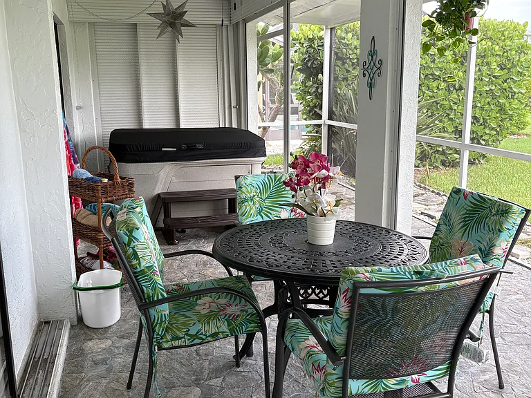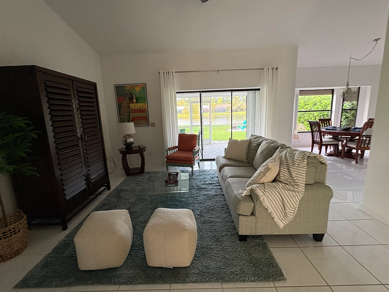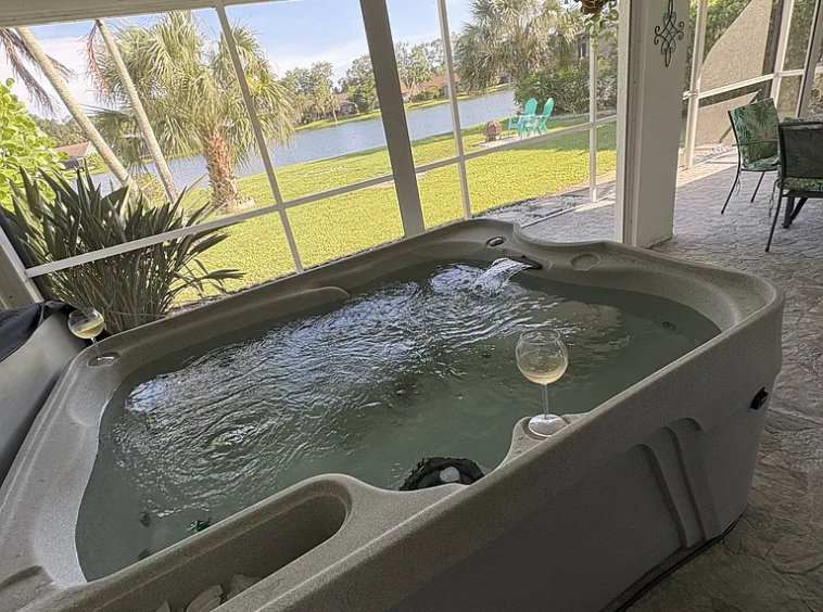 Welcome to this beautifully updated 3-bedroom, 2-bathroom Lakefront Spa home located just minutes from Downtown Naples and the white-sand beaches of the Gulf. Peaceful, tranquil setting, this single family home recently updated offers 3 bedroom, 2 full baths and gorgeous kitchen with two car garage and incredible views of the lake! Your own jewel on the lake, sit by your backyard fire pit, relax and enjoy! Offering a furnished annual rental at $3,950 a month which includes landscaping, pest control. This freshly painted, well-maintained residence offers a spacious layout with modern finishes throughout, perfect for comfortable living and entertaining. Enjoy the private screened-in patio with Spa, large waterside backyard, and peaceful neighborhood setting ideal for families, professionals, or seasonal visitors.