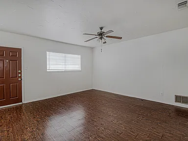 This 3-bedroom, 2-bathroom gem features a spacious living area with vinyl wood floors throughout common areas and cozy carpeted bedrooms. The kitchen is a standout, offering ample cabinet space, a pantry closet, a dishwasher, a gas range stove, a separate oven, and a double-sided sink with a picturesque view of the backyard. The primary suite is designed for relaxation with a private vanity area, excellent lighting, and a separate, shower-tub combo. The two secondary bedrooms are generously sized and connected by a convenient Jack-and-Jill bathroom featuring abundant counter space and a built-in vanity setup perfect for a chair or stool. Step outside to enjoy the covered patio and backyard, ideal for entertaining or unwinding.