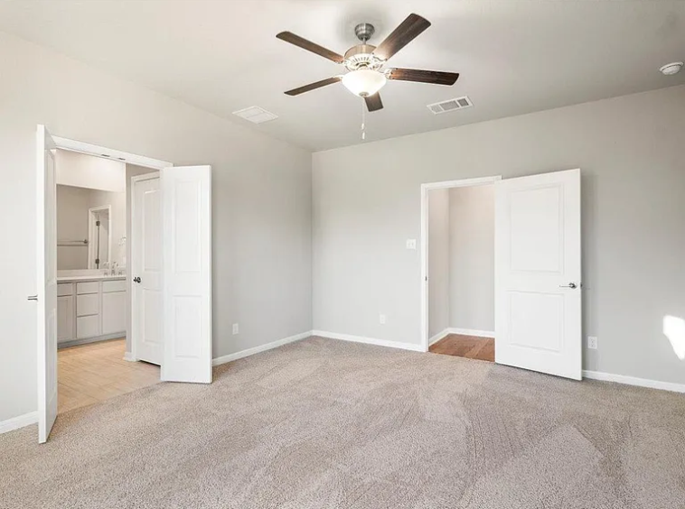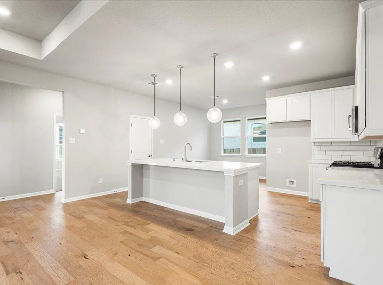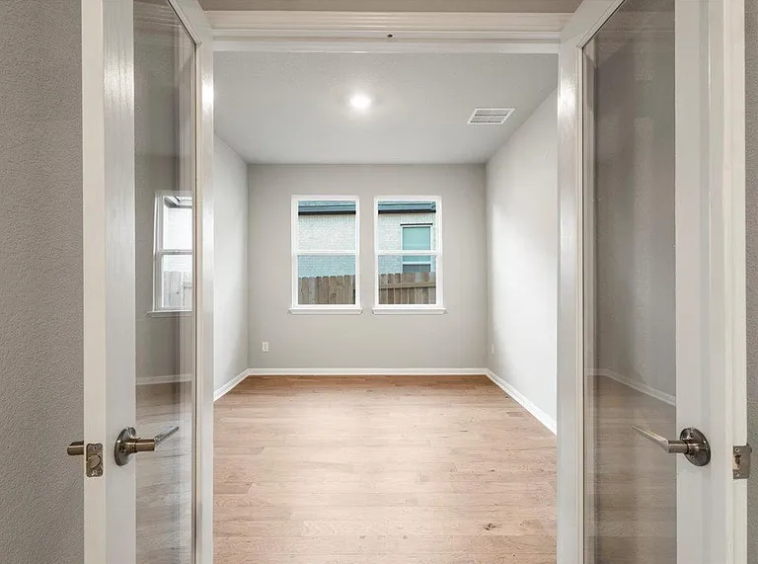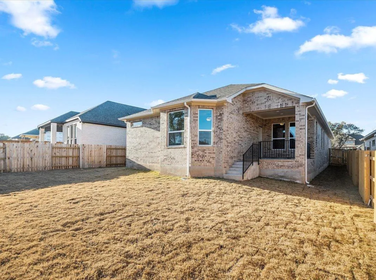 3 bed 2 bath Plus study in a beautiful Park Side on the river community ..This large single-story floor plan provides optimal space for your family. The kitchen is open to the family room which makes a great place to entertain family and friends! The outdoor covered living completes the hospitality ensemble. Take refuge in a sumptuous owner’s suite nicely located on the opposite side of the house from the other bedrooms, enjoy the tranquility. The windows bathe the room in natural light with the bay window for additional floor space. The owner’s bath includes dual sinks, a linen closet, and a large walk-in closet. The second and third bedroom share a lovely bathroom, and the study is perfect for quiet time while working from home. Structural options added at 204 Green Knoll include: 12″ pop-up ceiling at gathering, full gutters, bay window at owner’s suite, covered outdoor living, pre-plumb for future water softener, and gas stub out.
