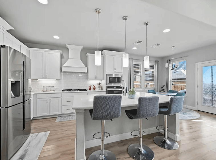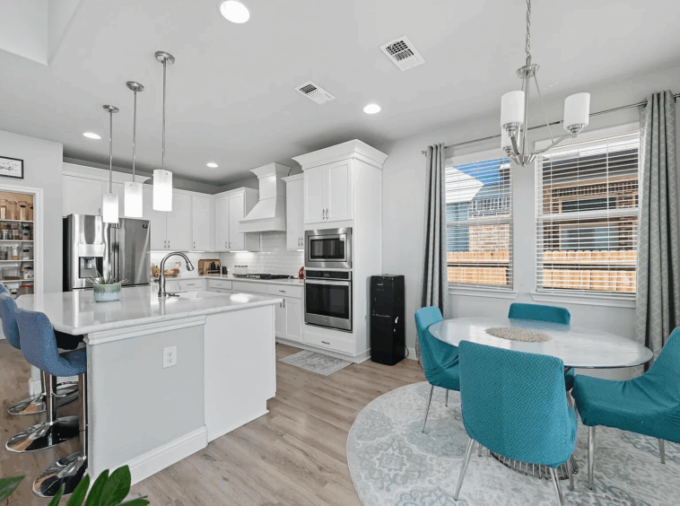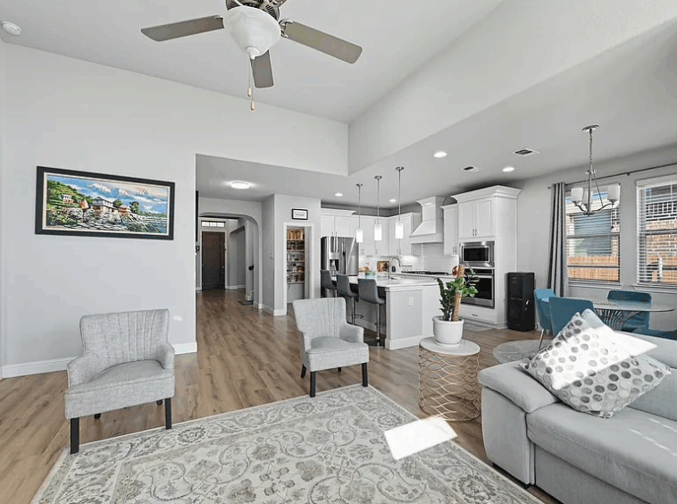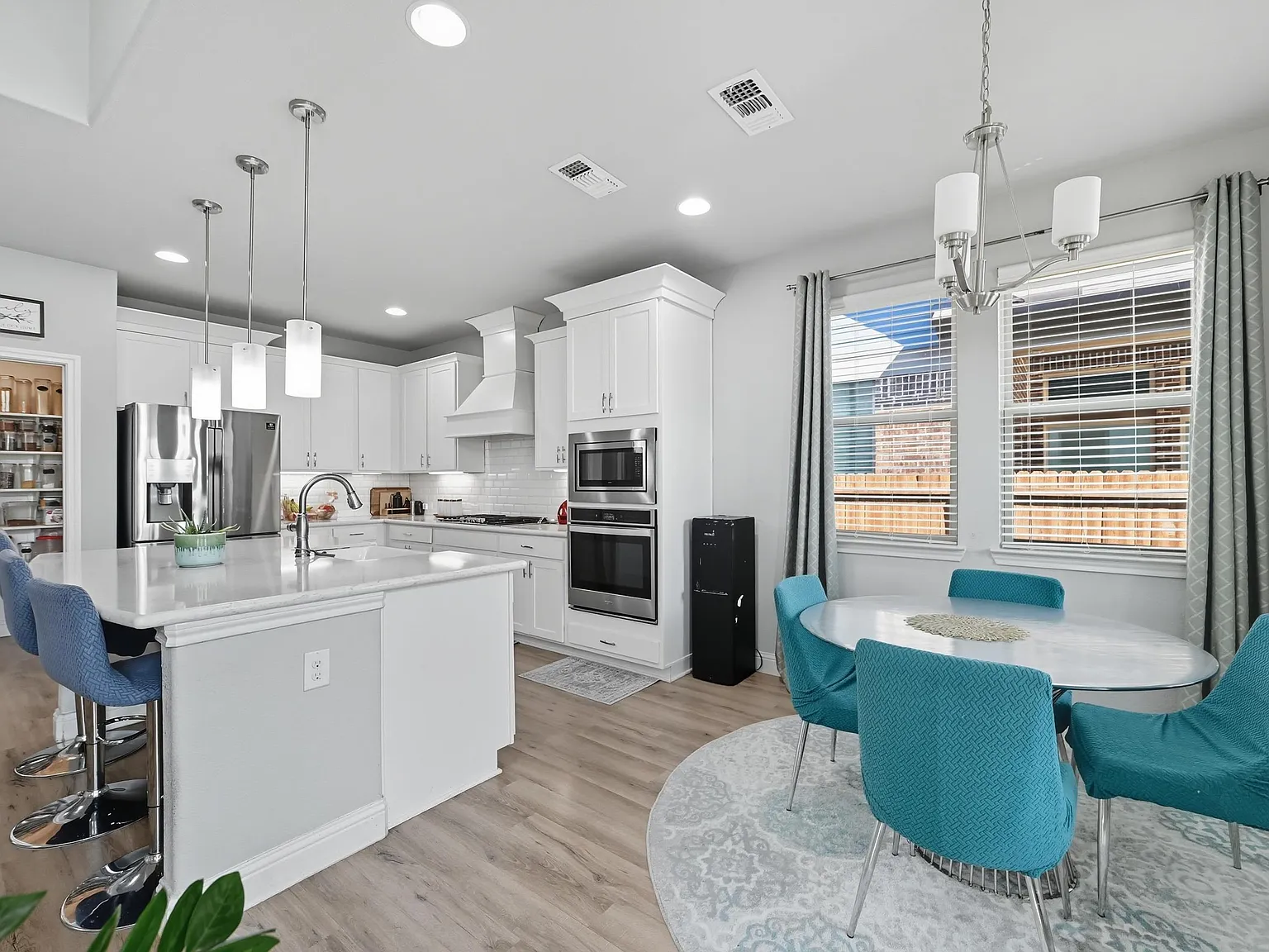 Welcome to a stunning 4-bedroom, 3-bathroom home in the desirable Lakes of River Trails community in Fort Worth, TX. This open-concept layout features a gourmet kitchen with stainless steel appliances, granite countertops, walk-in pantry, and a luxurious master suite with walk-in closet and en-suite bath. Enjoy multiple living areas with 2 full bathrooms downstairs, including a family room, breakfast nook, flexible (dining or office) space, and an upstairs 2 bedrooms, a full bath, and a game or media room. Recent upgrades include full interior and exterior paint, landscaped yard, and a newly converted attic perfect for a playroom or office. Spacious private backyard offers territorial views ideal for gardening, and the attached 2-car garage includes a Tesla home charger. Located within walking distance to award-winning HEB ISD school and church, trails and lakes, and close to major highways, parks, shopping, and dining.