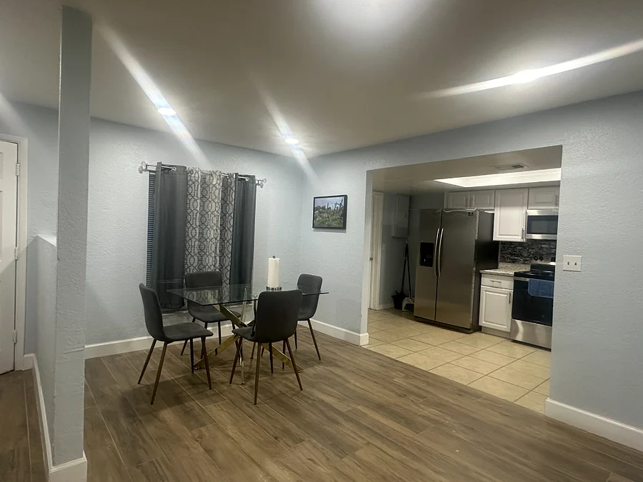 Welcome to this beautifully remodeled 3-bedroom, 2-bathroom single-family home, perfectly situated in a desirable and peaceful neighborhood. This fully furnished home offers modern comforts and convenience, making it an ideal choice for families, professionals, or traveling nurses.