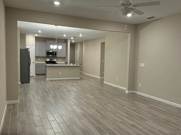 Very New 3 Bed 2 Bath home with additional large flex room and office room. Spacious open floor plan in Granary Park on Sandridge Road. Fully equipped Kitchen with Island and lots of Cabinet space open to the bright Great room leading to a large screened patio brings in ample amount of natural light. big Master suite feature master bath with a Garden tub and walk-in shower, dual vanities and a large closet. Spacious and Cozy guest rooms access from a large retreat between and share a comfortable guest bath. The home features a 2 car garage and deep driveway provide sufficient parking. In house Laundry with Washer and Dryer. Pictures are from Model home and the actual home features similar options and upgrades.