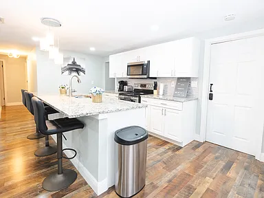 Modern Kitchen: Enjoy cooking in the fully equipped kitchen, featuring stainless steel appliances, quartz countertops, and an inviting island for meal prep or casual dining.