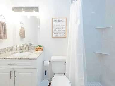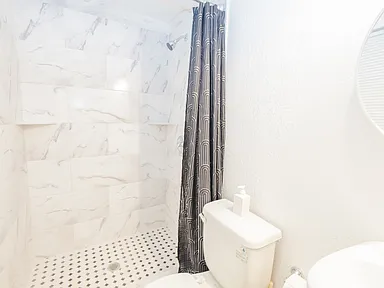 No Double Sinks: All bathrooms are equipped with single sinks and walk-in showers, making for a streamlined and modern feel.