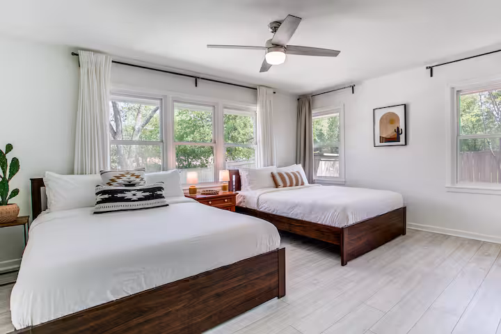 The Cowtown Oasis updated ranch home is perfect for families, and boasts beautiful finishes, a home office, and a vibrant backyard with a gated, kid-friendly pool area, a large grassy yard, a gas grill, corn hole and a firepit. The central location in the sought-after mid-century Ridglea Hills neighborhood is a short drive from all the fun activities and restaurants Fort Worth has to offer. Make your work from home more relaxing with the pool view or unwind in the backyard and catch some rays!