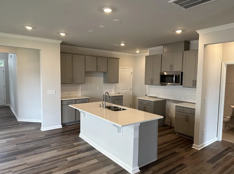 Gorgeous Residence, Amazing Location, Garage & big back yard! Available Soon, Apply Now. – Superb North Raleigh residence overloaded w/designer upgrades. Absolutely love the impressive open floor plan w/large living room with abundant natural light. Kitchen outfitted w/quartz counter tops, appliances, large island bar, walk in pantry and breakfast area which opens to the rear screened porch and back yard perfect for entertaining. First floor bedroom and full bath. On the upper level an expansive Master Suite highlighted w/a large walk-in closet and ensuite bath. Spa-like Master Bath w/dual sink vanity, separate shower stall. Two additional bedrooms w/common full bath, loft space that could be used as a bonus room and second story laundry w/washer & dryer, storage and full bathroom. 2 car garage and driveway for storage and parking. Community features kid’s playground.