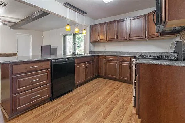 Nestled in the heart of Richland Hills, 6939 Hovenkamp Ave is a charming 3-bedroom, 2-bathroom home that offers a warm and inviting atmosphere. With 1,967 sq ft of living space on a generous 0.45-acre lot, this residence provides ample room for comfortable living. The original hardwood floors add character, while the cozy den with a wood-burning stone fireplace creates a perfect spot for relaxation. The spacious kitchen boasts granite countertops and updated appliances, ideal for culinary endeavors. Outside, mature shade trees grace the backyard, offering a tranquil retreat. Whether you’re enjoying a quiet moment or entertaining guests, this home provides a peaceful haven to call your own.