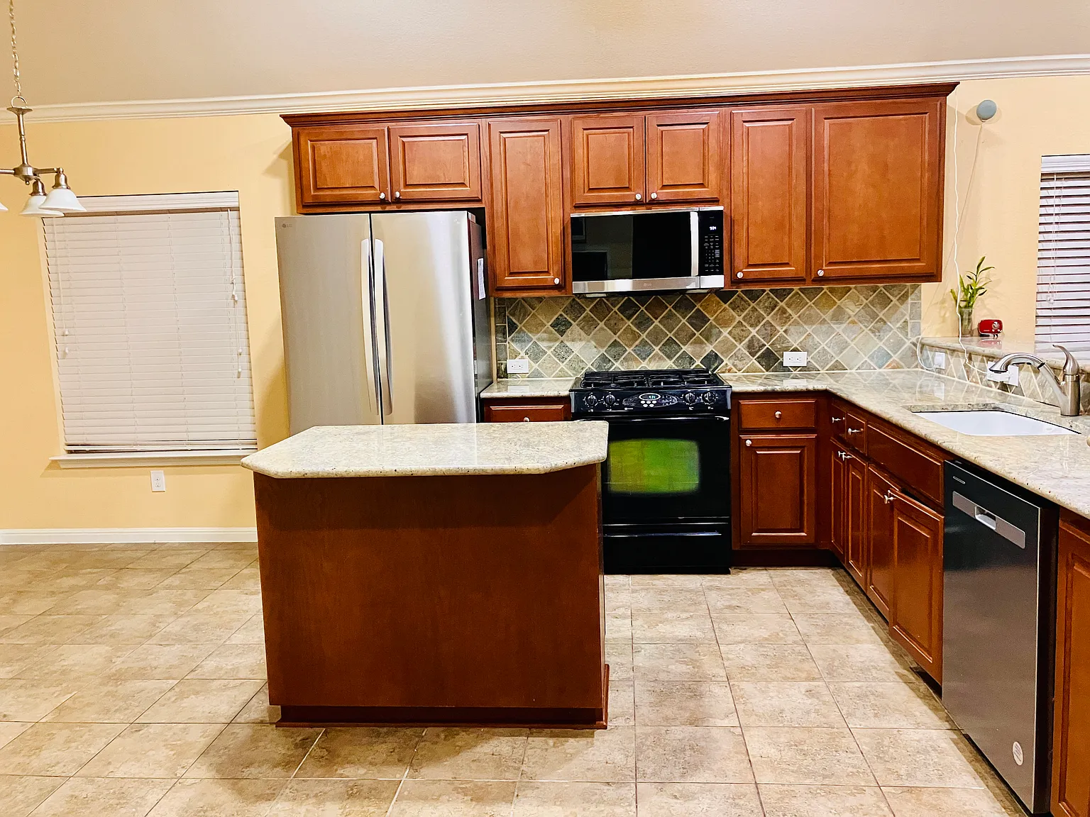 Modern Kitchen: Equipped with stainless steel appliances, granite countertops, and a breakfast bar, the kitchen is both functional and stylish.