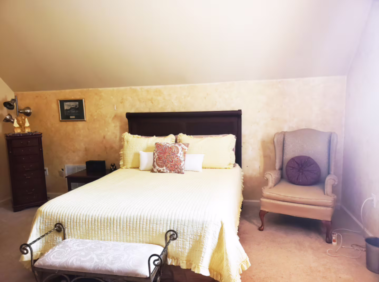 Large Master King Suite is separate upstairs with bathroom is a good hideaway for privacy, and repose!