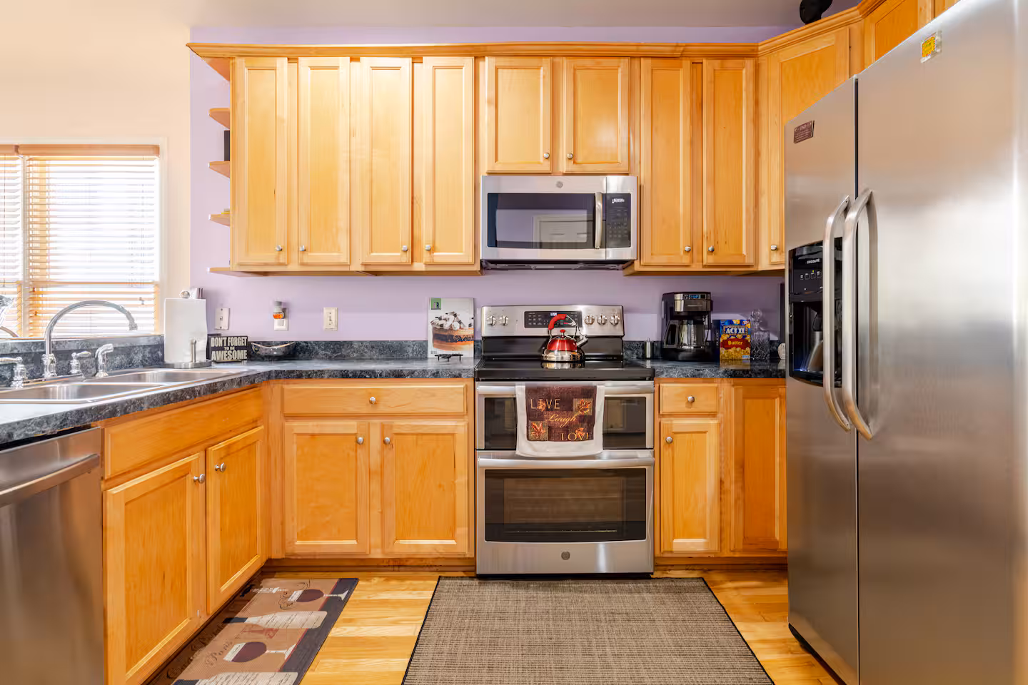 We have created comfortable spaces to socialize, and gather with friends and family. A deck and patio out back, and upfront, a country porch swings to enjoy quite evening and beautiful sunsets.